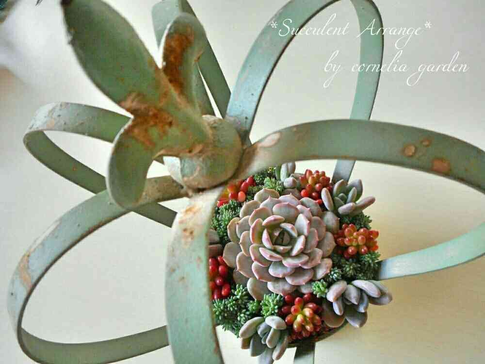 キレイですね〜✨ そのままアクセサリーのように身につけられそうな可愛らしさです💗素敵な王冠の足元で、多肉ちゃんの色形が負けない存在感ですね🎶