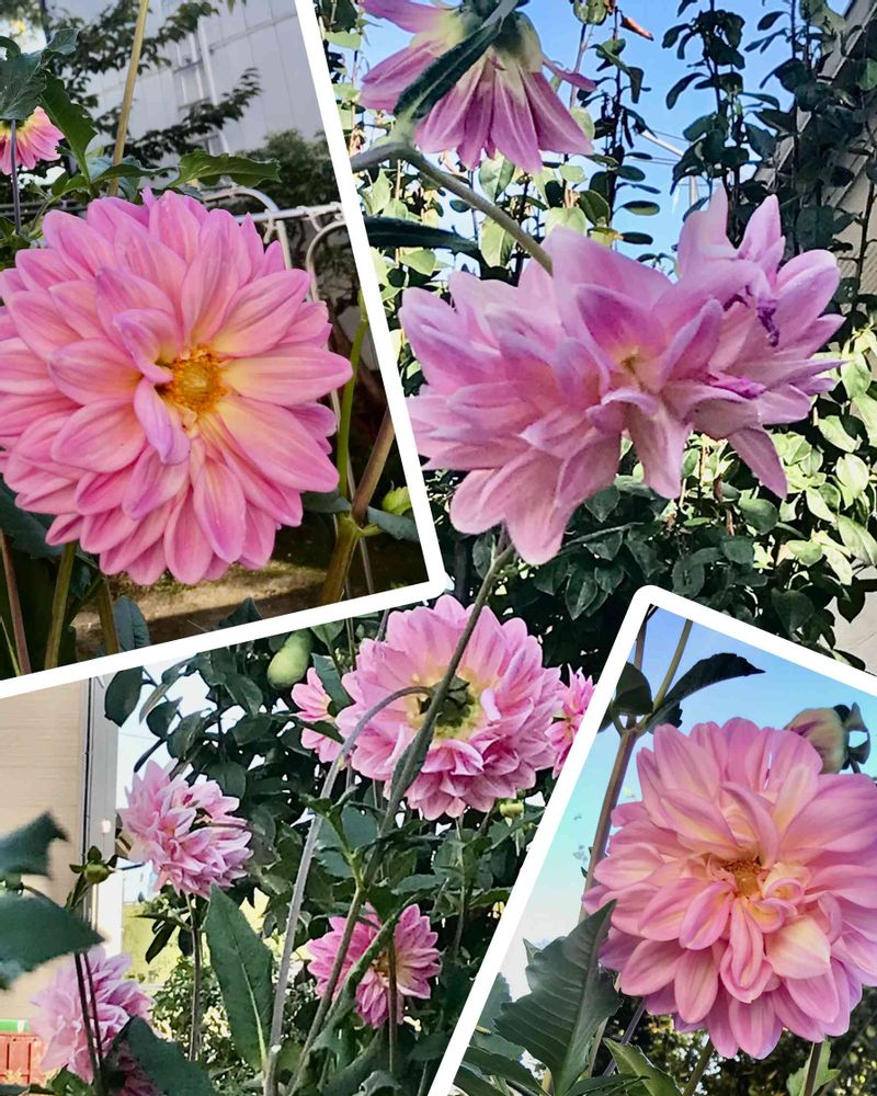 ピンクのダリアもかわいい、こんなにたくさんお庭に咲いてるなんて、頭が重いのはちょい骨折が心配ですね😮💨