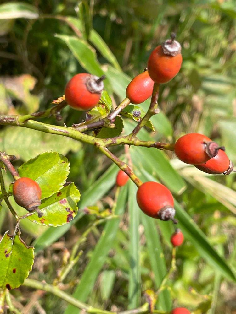 テリハノイバラのローズヒップ。特徴は楕円形をしているそうです。