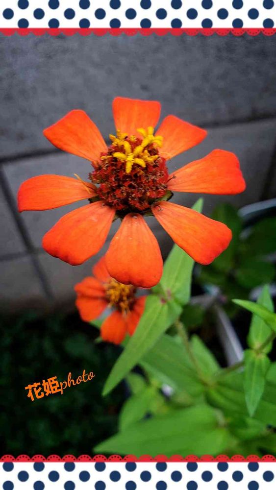 ひょろ~んと伸びてお花が咲いてる姿、殺風景なプロック壁の側だけど、オレンジカラーが目立ってかわいらしいです✨
