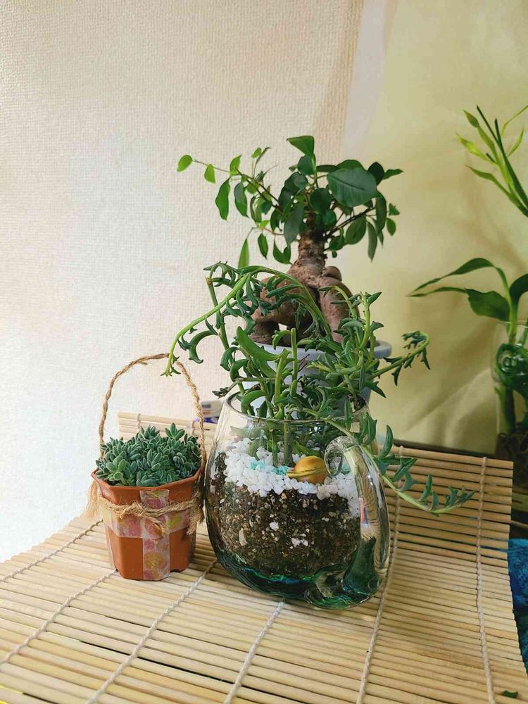 自慢のガジュマルのお尻を、ヒップアップ!同じ鉢ですが、土を、綺麗にしました!ドルフィン🐬ネックレスは、三日月ネックレスやらと、入り交じって少しでもわけわけしようかと……ダメもとで、いいんです‼️凄く毎年増えてしまって……😓この子、名前忘れてしまった😓伸び伸びのセダム系をこんもり植え替えました😃このセダム系とは、思いますが、長く居るので名前が、さっぱり分からないんです。教えてください😣