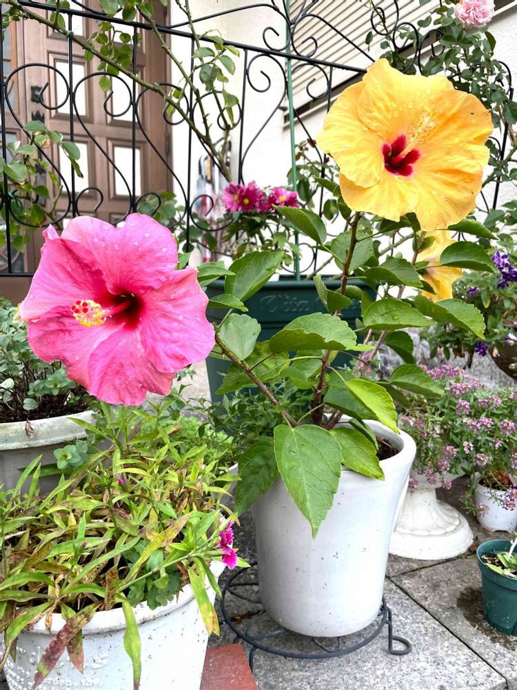 ひとつの鉢から違う色🌺??株が違うのですか?それとも2色咲き💛❤️??