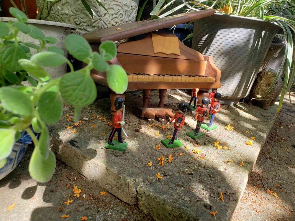 さんへ はい金木犀の大木があります。芸術の秋とイギリスの衛兵交代式も始まったので二つをかけて見ました。コメントm(__)m