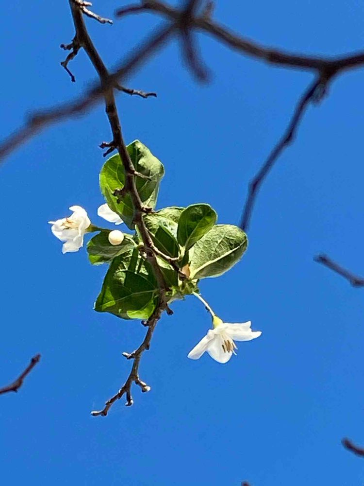 青い空に白いお花がきれいでした。見〜つけた❣️