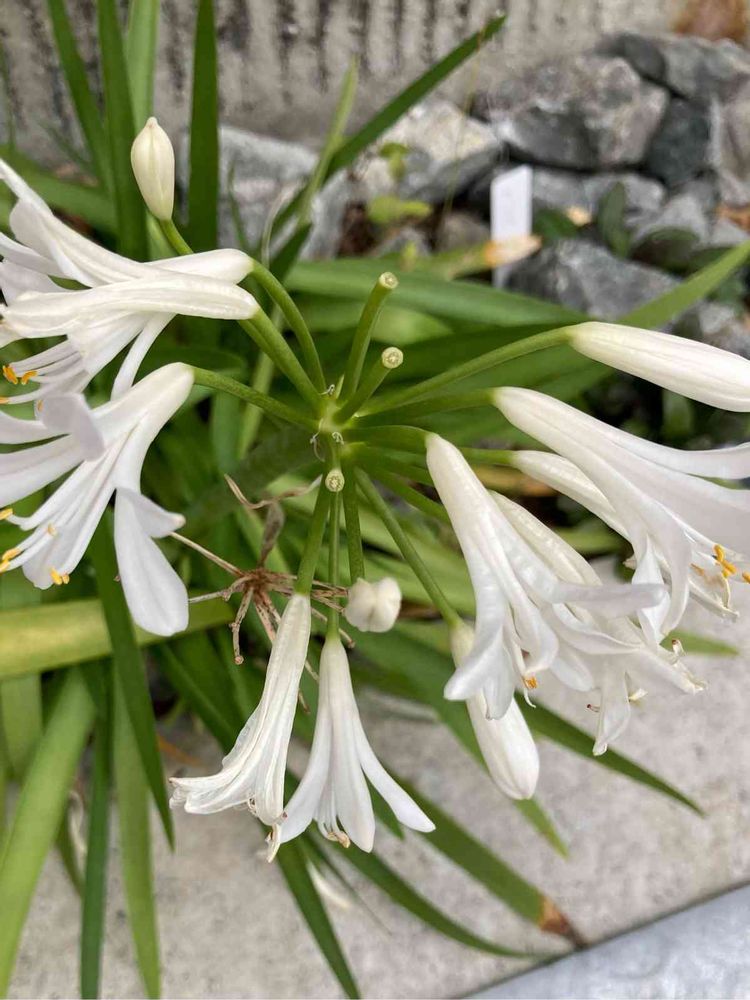 さん こんばんは🌆そうなんですよ。私もムラサキばかり見て 白花見た時は嬉しかったですね。コレはヒメアガパンサスで小型ですが 普通サイズの白花もあります。来年会えると良いですね。