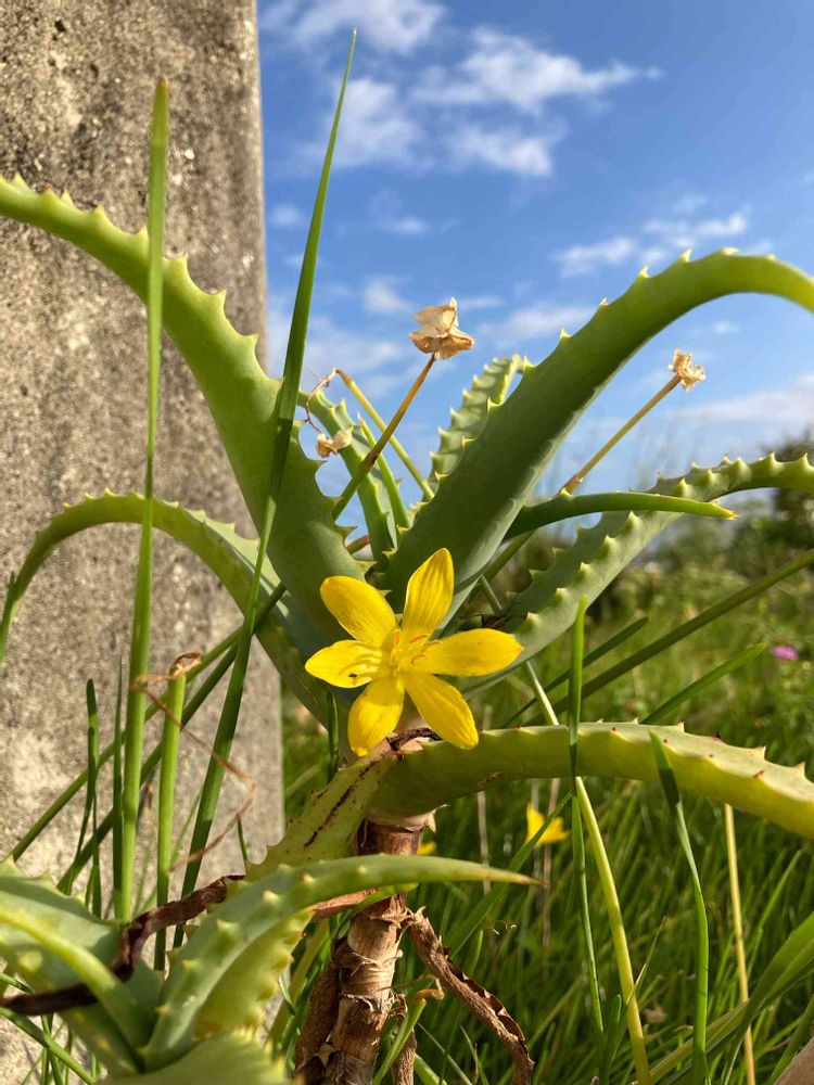 9/17のpicを見ていただければわかると思いますが、キバナマタスダレ🌼がアロエの間から顔を出しているんですよ😊
