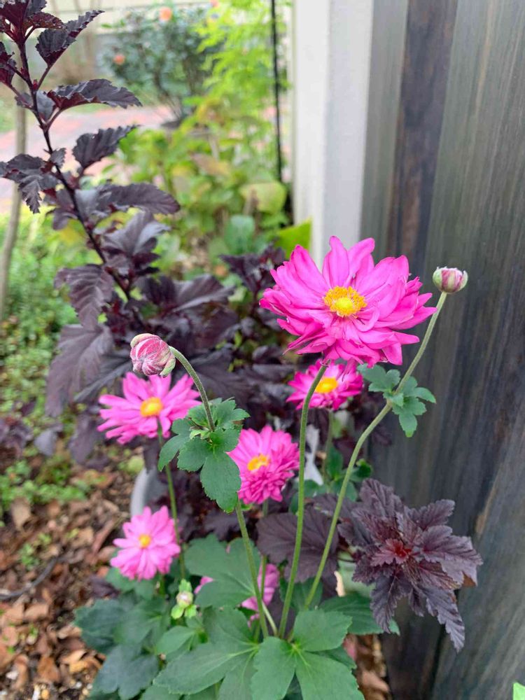 シュウメイギクにこんなビビットな色があるんだね♪♪ かわいい(๑ ́ᄇ`๑)