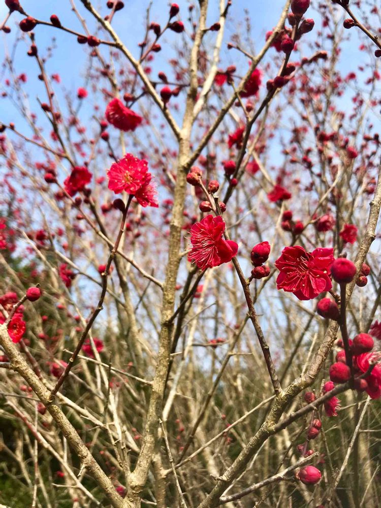 写真の紅梅なんかはほぼ満開状態ですが、枝垂れ梅なんかは、今年は遅く3月中旬頃が見頃かなと思っています。