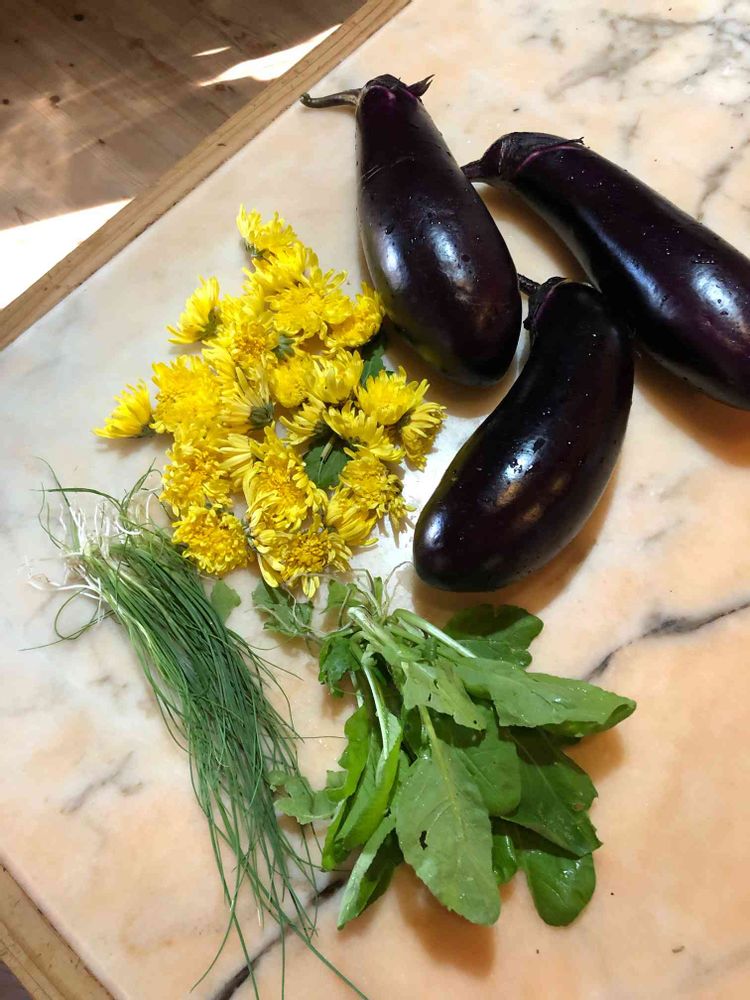 茄子🍆、阿房宮、熊本京菜、芽葱