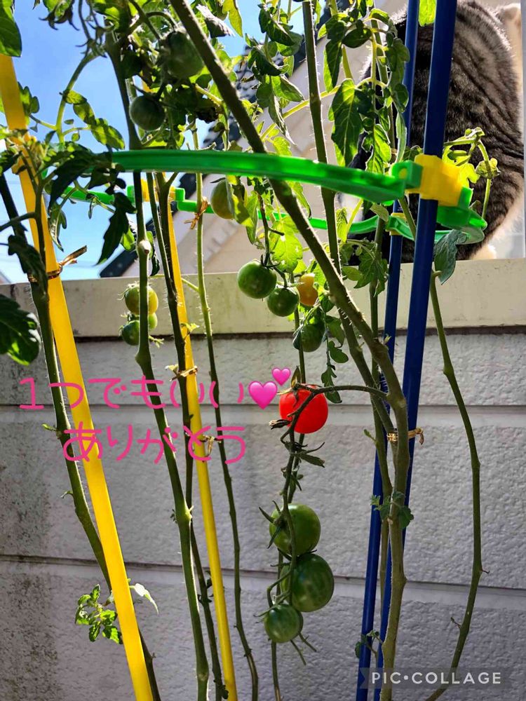 お孫さんからのミニトマト🍅愛おしいですねー💕 一つでも実ると 宝もの✨