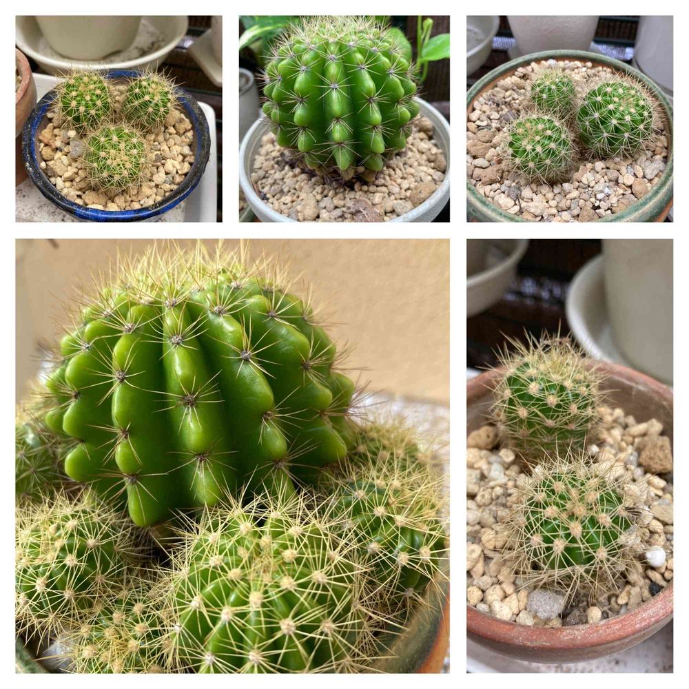 チビサボテンがむくむくでぎゅうぎゅうニョキニョキなって..植え替えしなあかんと思いつつ 😰どげとげが苦手で なかなかお引っ越ししたげなかったけど やっと‼︎