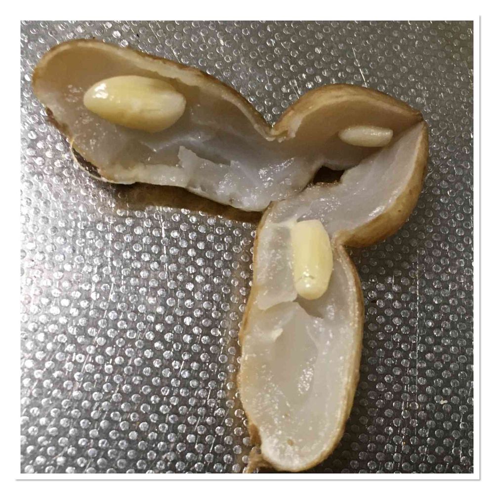 未熟な落花生の塩茹で。小さな落花生を取り囲む白い柔らかい物質。