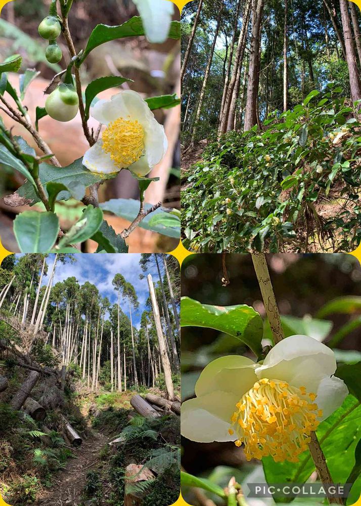 杉や檜の林に、なぜかこの木の花道