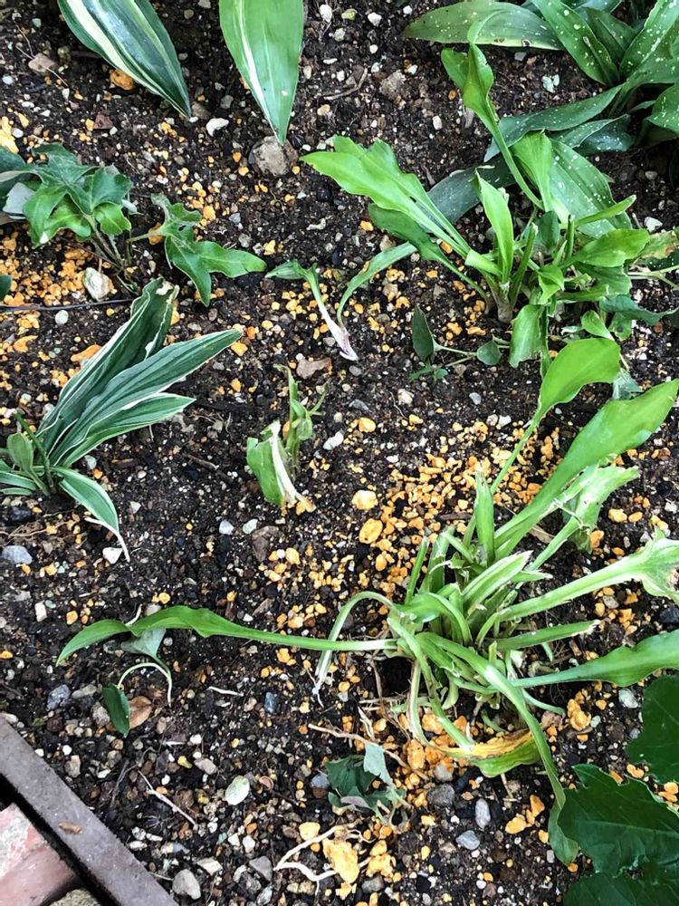 5、葉傷みが激しいですが、2種類の小型ギボウシ