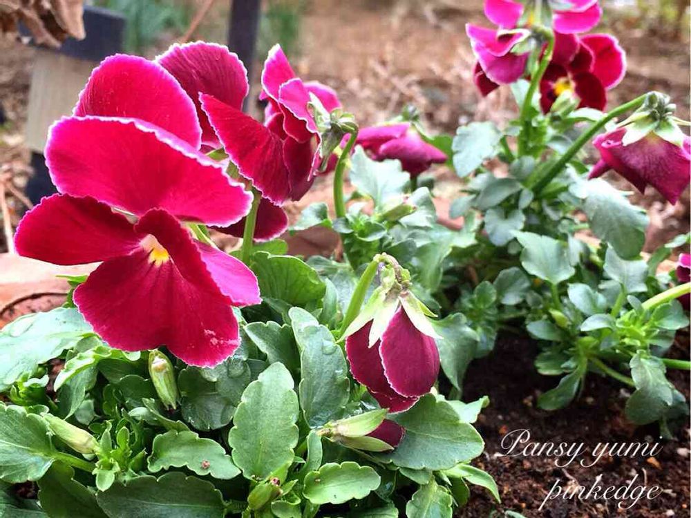 パンジーよりビオラを買う事が多いのですが、花の大きさ、鮮やかな色味も、白に近い淡いピンクのふりふりなエッジにも惹かれ友達とおそろでGET(^^)
