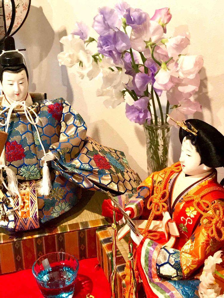 みほっこさんから頂いたスイートピー、お雛様に彩りを添えてくれています💕