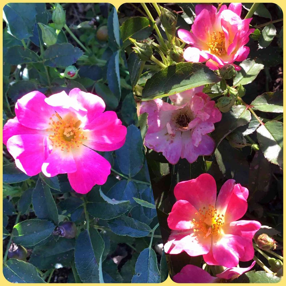 薔薇の名前はわかりませんが、一重咲きの花弁ながら、華やかな雰囲気の薔薇です🌹