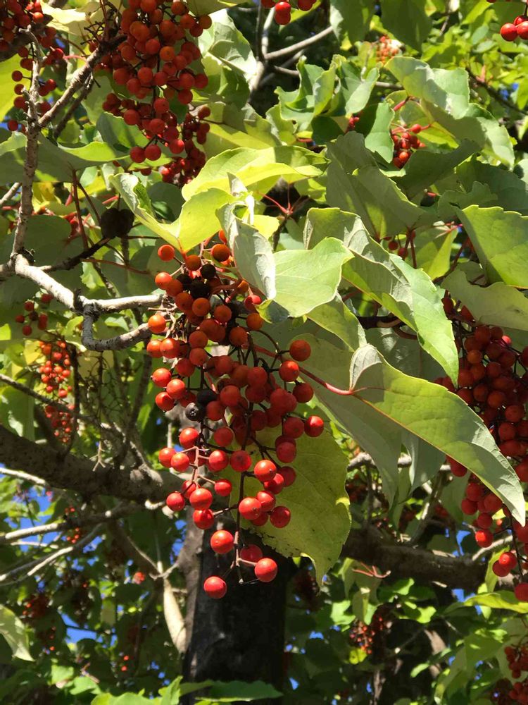 以前から、気になっていた、赤い実の名前がわかりました。南天桐。