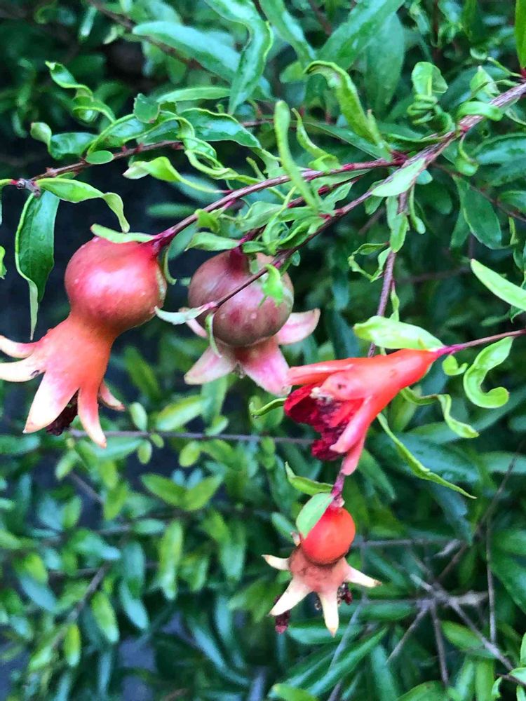先超されて、しまいました。花と実 同時のザクロ🟠 気が合いますねー♪🐥🍀🍁🧙♀️🏷️(笑)