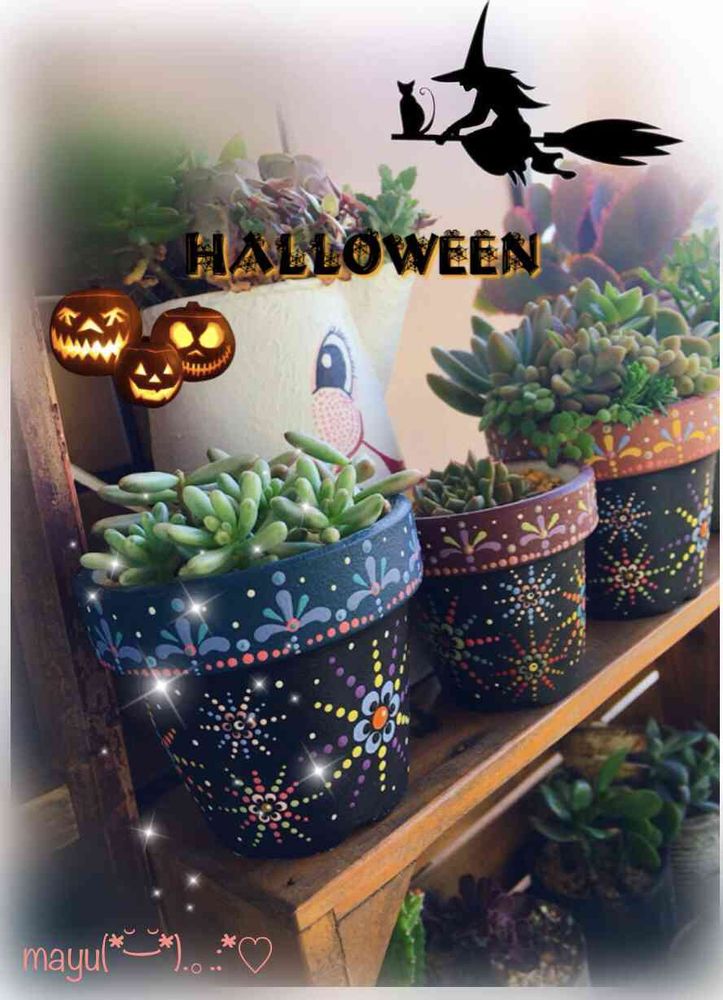 てんてんみやちゃんのリメ鉢がハロウィンにとても似合います❤️