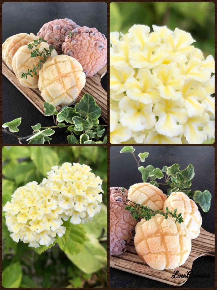 久しぶりにメロンパンを作り、ランタナさんのまるいフォルムとコラボしてみました🍞+🍈