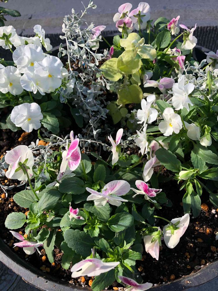今年は白ベースのパンジー✖️🌷