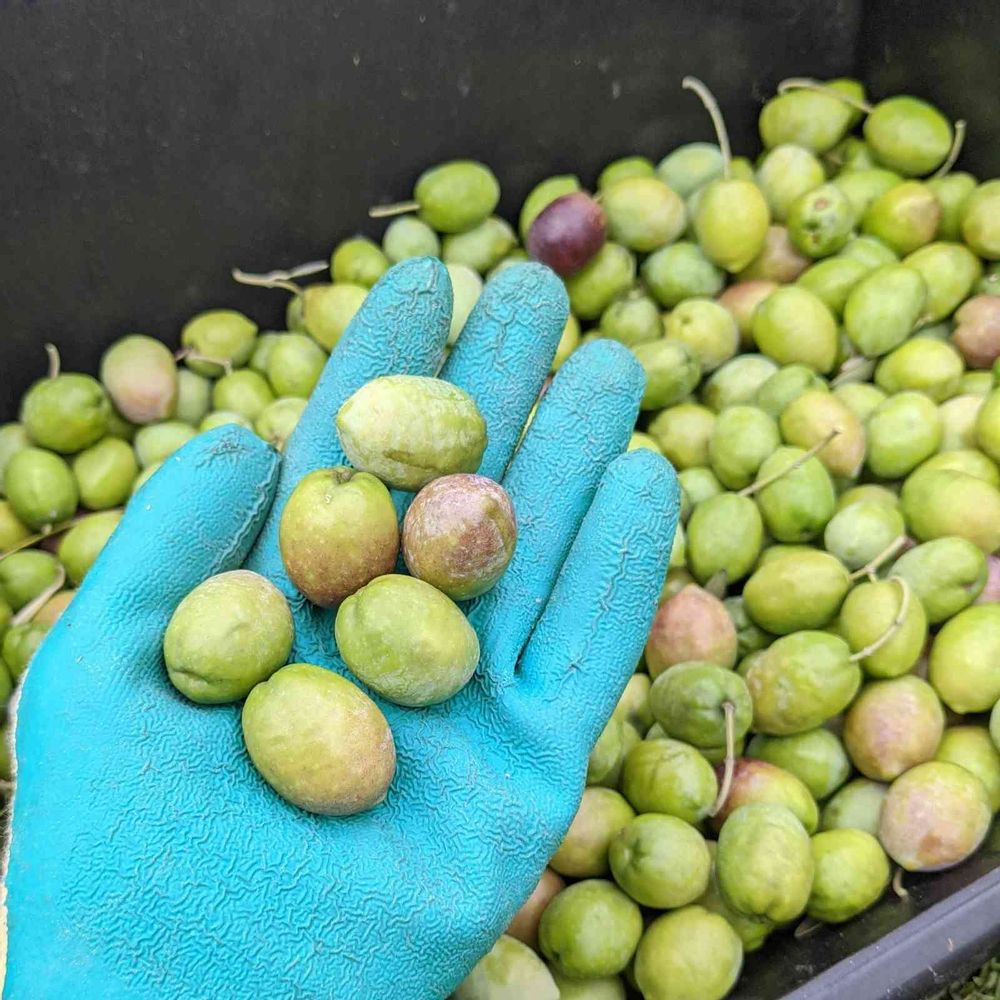 我が家はオリーブが二本並べて植えてあって、今年は片方だけ豊作、もう片方は不作でした。マンザニロとピクアルが植わっていて、おそらく豊作だったのはピクアル。もうどっちがどっちだったかわからなくなっちゃって…でも毎年ピクアルのほうがよくなると思います