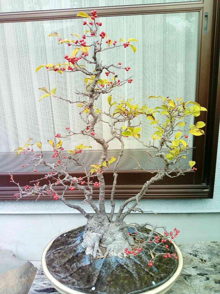お庭に有る盆栽仕立てのウメモドキです。