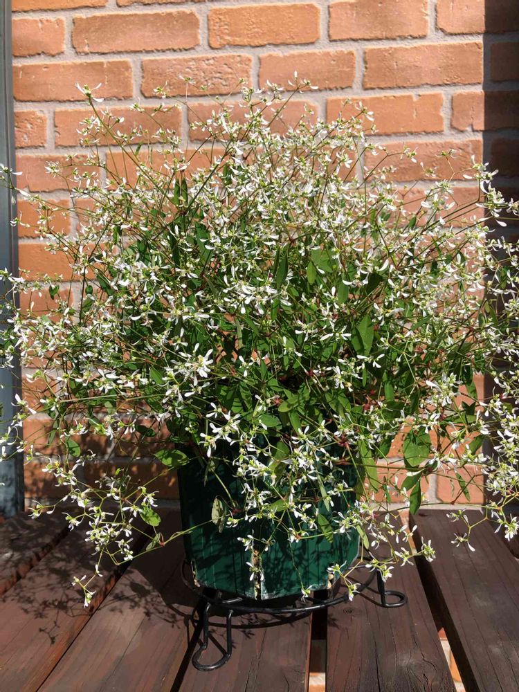 7号のスリット鉢に、さし芽を5本植えて、最初はあんなにヒョロヒョロしていたのに、ある頃から乱れ咲いています笑笑