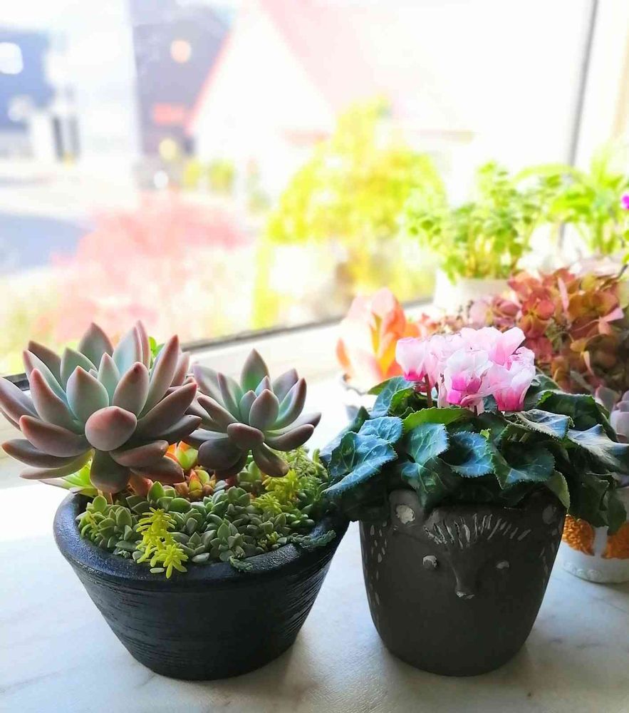 一緒に植えてある鉢やセダム、ちょっとオレンジ色の子も素敵〜💖(*´∀`*)