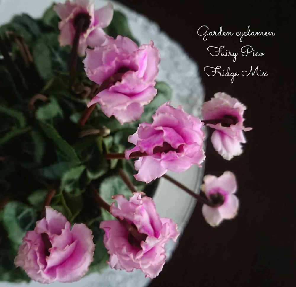 先週末、そろそろパンジービオラはどうかしら~と、見るだけのつもりだった園芸店で購入したシクラメンです。