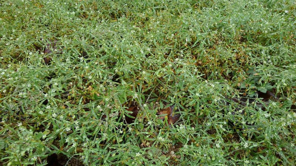 雨上がり、芝生のような草に咲く1mm程の白い小さな花が雫でキラキラ光り綺麗でした✨