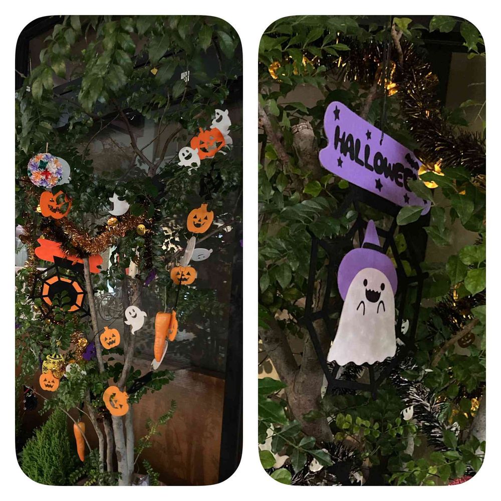 いつも置いてあるツリーにハロウィンの飾り付け🎃