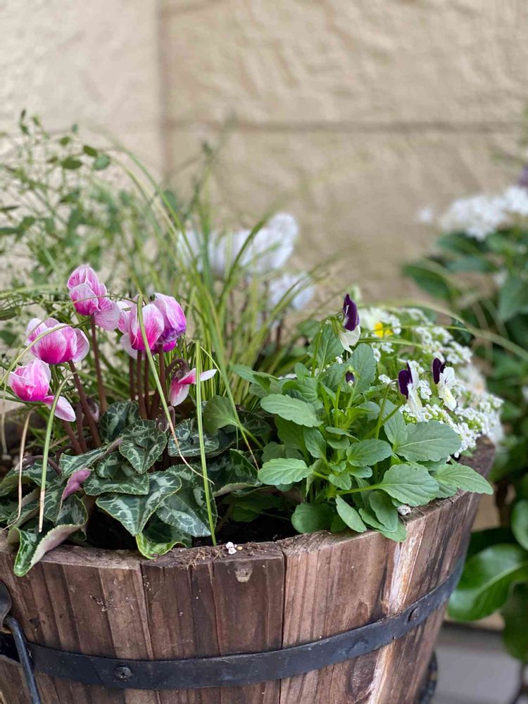あっ、もう冬バージョンの寄せ植えされたんですね✨