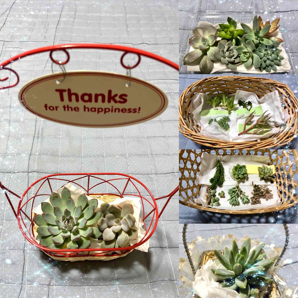 他の多肉ちゃん達もウットリするくらい綺麗なので、潰れないようにカゴ🧺に並べました😆