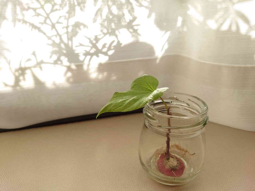 前にGSで、サツマイモの切れ端から葉っぱ出して飾ってる投稿見てやりたいなーと。