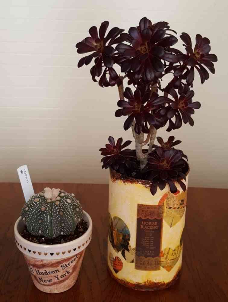 黒法師を自作リメ缶にin。入浴剤の缶をリメイクしてみました。隣は一昨日投稿した兜なのですが、リメ鉢の反対側もけっこう気に入っているので、ご一緒させていただきました。