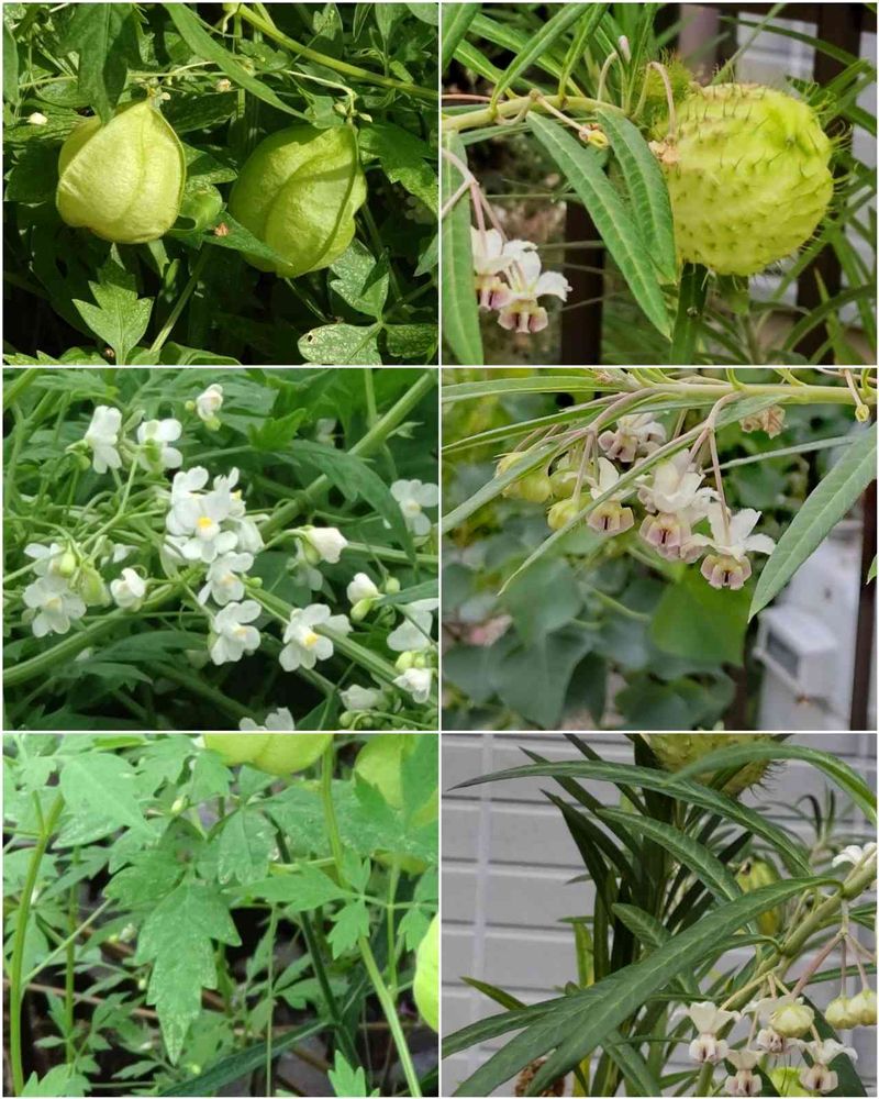 ※紙風船のような果実が似たこの植物は 比べてみたら 葉っぱも花も種も それぞれ個性があって違うんですね…。