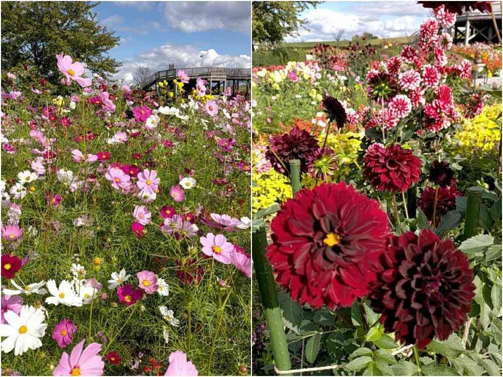 道の駅 新潟ふるさと村お花畑 (^^♪ ダリアとコスモスのコラボ