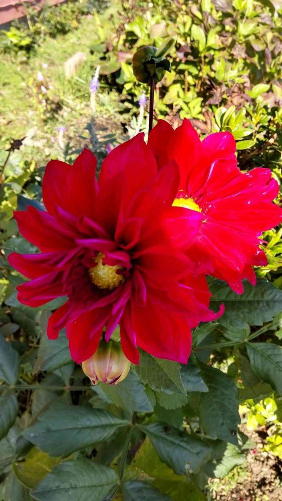 真っ赤なダリアさん、花友さんから数年前頂いてダメになったと思ってたら、なんと咲いてくれたよ😅