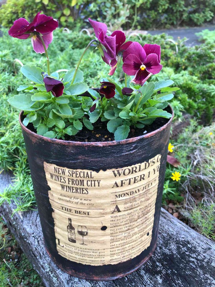ビオラ,リメ缶,職場の花壇の投稿画像