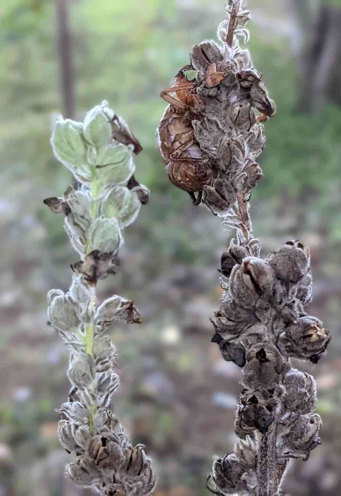 先日ビロードモウズイカの花後のモフモフを写していらっしゃるお写真を拝見して、私も久し振りに写しましょうと朝の庭で写しました。するとこんな何だか怖い写真になっちゃったんです。😱