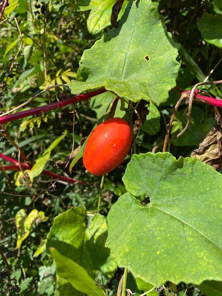 都会では、カラスウリなかなか見られないですよね〜こちらでは、自生しているカラスウリ身近に見られます😊