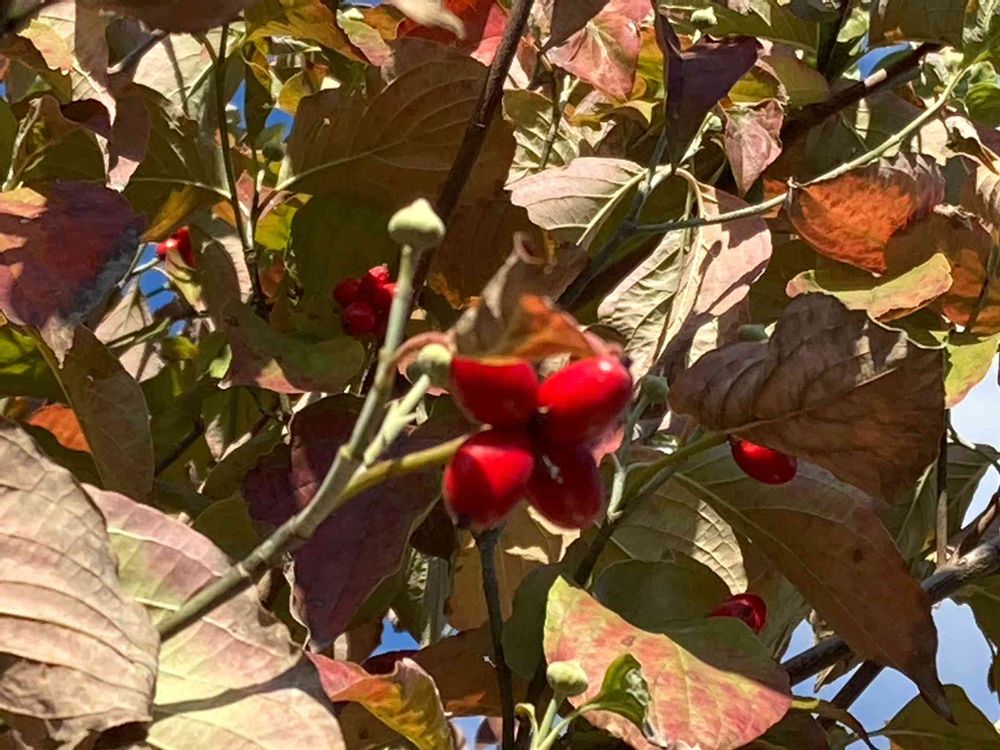 ハナミズキの紅葉して赤い実がキレイですね‼️❤️鳥さん