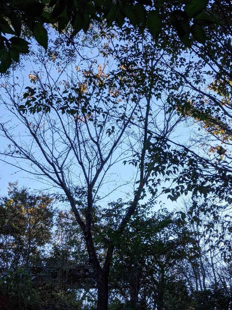 紅葉を見せてくれる前に葉がかなり落ちてしまいました。今日の風でもっと落ちてしまったことでしょう。