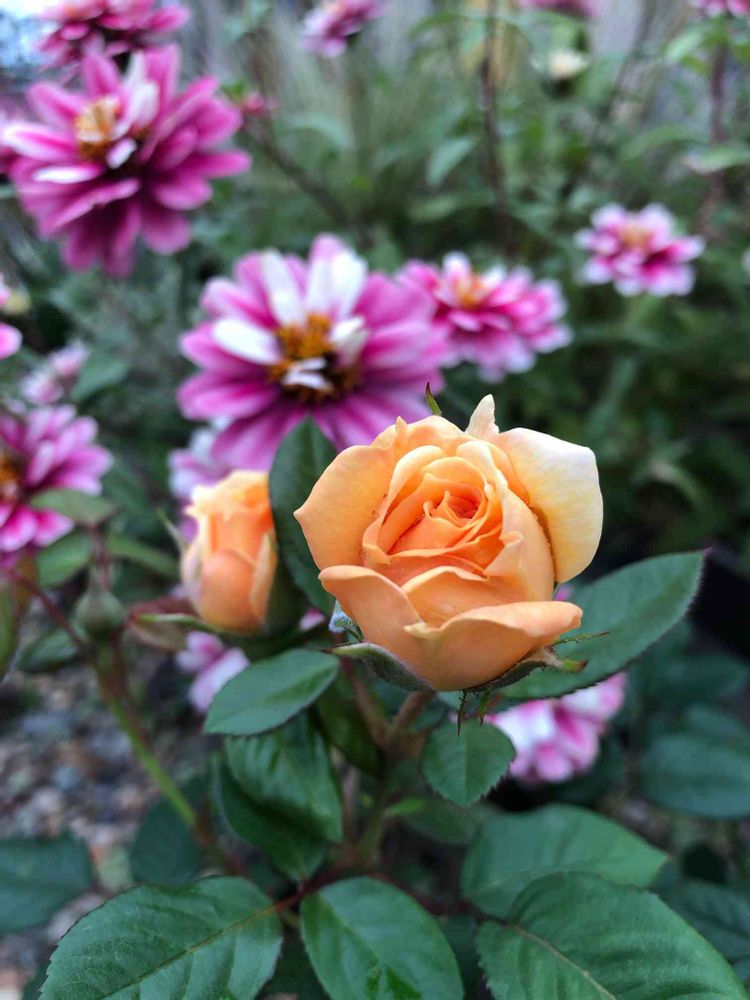 🍦🌹さんも綺麗だけど、後ろのジニアさんもとっても(,,>᎑<,,)カワイイ*•.❥* 色がイイですね👍