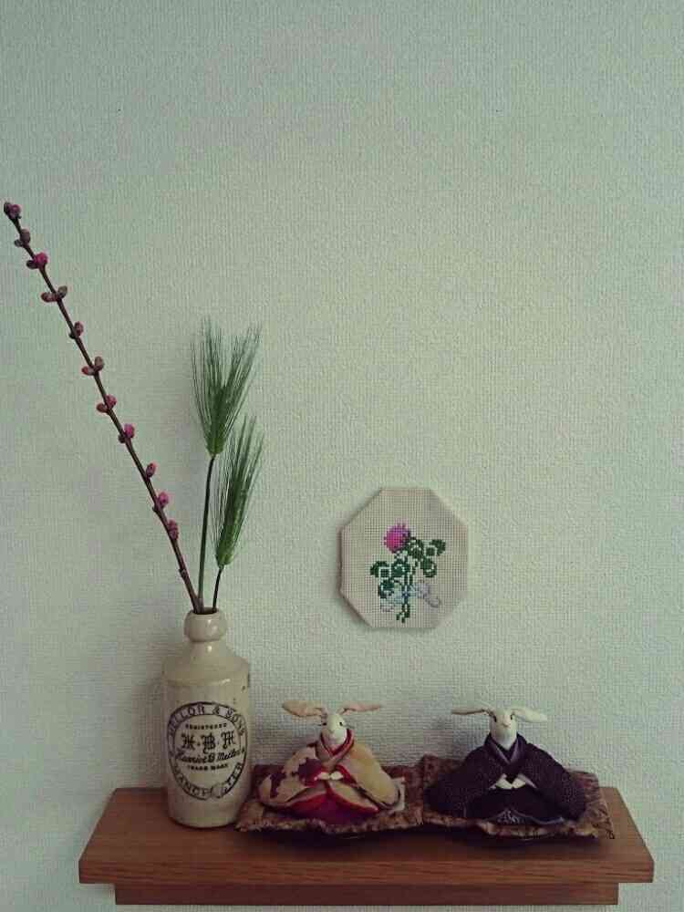 🏠も古布で作られたウサギのお雛様を出しました✨