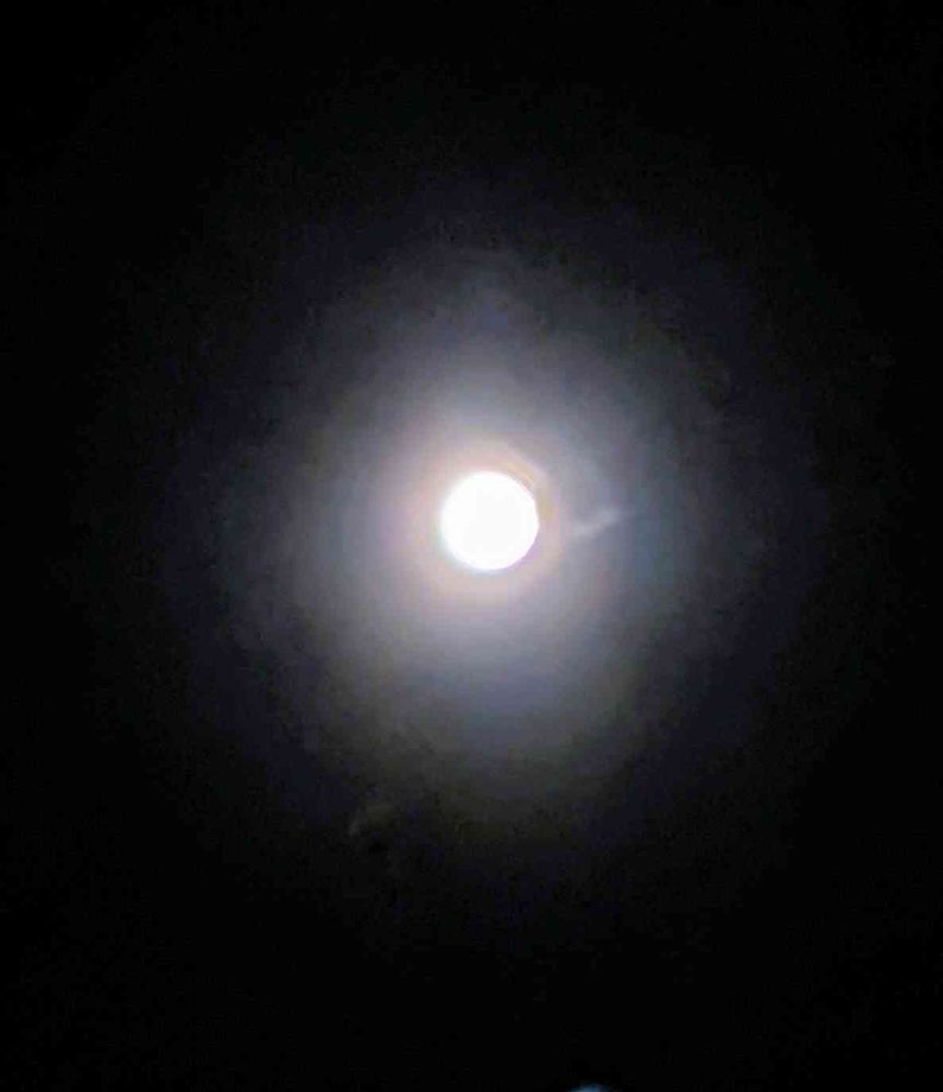 風が強くて寒く、レンズの向こうで光が収縮を繰り返して、なかなか満月を実感出来ませんでしたよ…。写真は沢山の中でようやく一枚こんな感じに…。