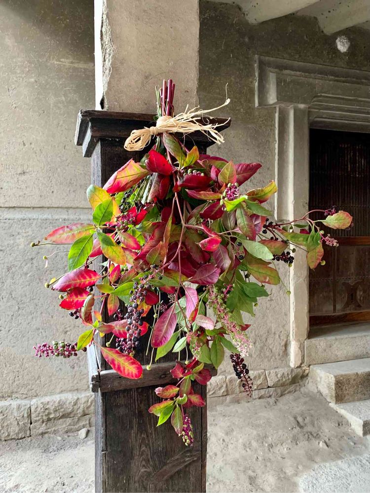 ご自宅の植物だけで 秋の彩り濃いスワッグですね。