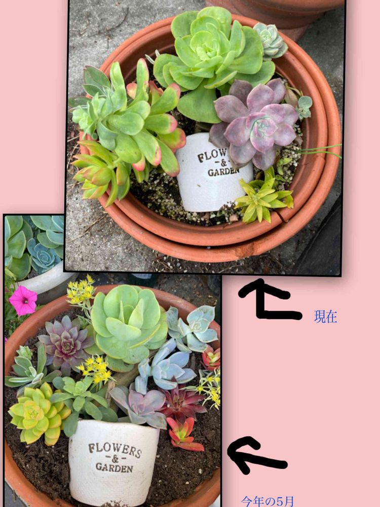 5月に寄せた鉢と上は現在の鉢とを比べてみました。